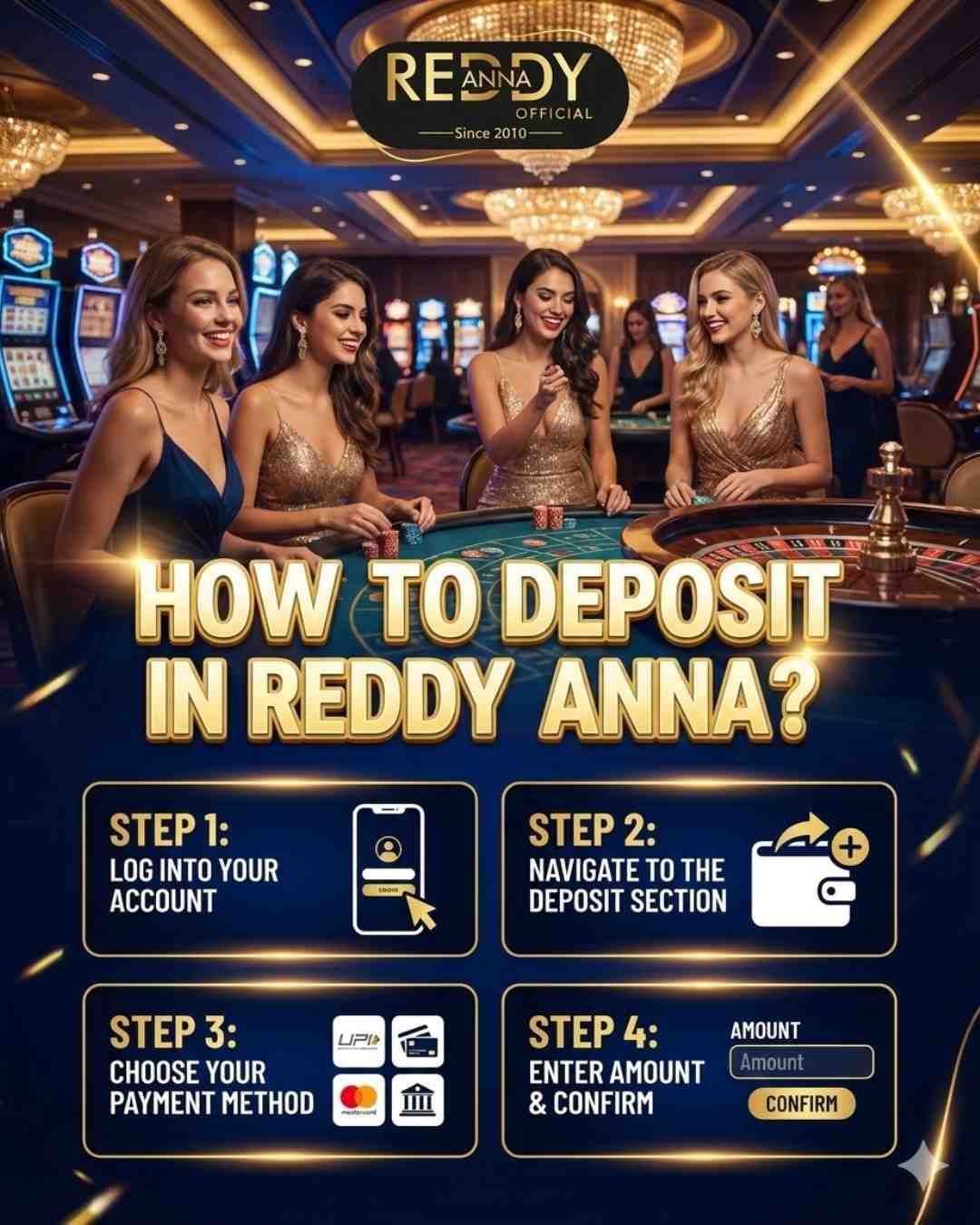 To start, just go to Reddy Anna and enter your information by tapping on Get Reddy Anna Login. Next, choose your preferred games from our wide assortment. We will send you a confirmation via WhatsApp as soon as you finish this step. Now that your account has been topped up, you are ready to play and experience the thrill!